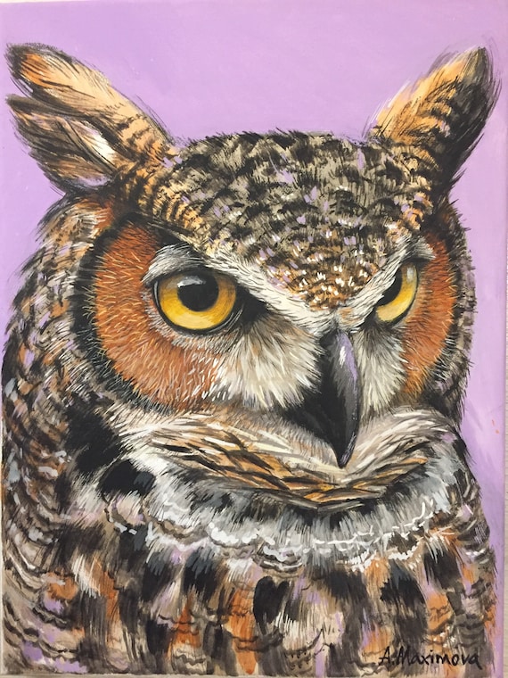 Owl Painting Acrylic Owl Portrait Original Painting Etsy Uk