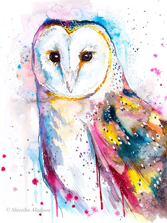 Barn Owl Watercolor Painting Print By Slaveika Aladjova Art Etsy Uk